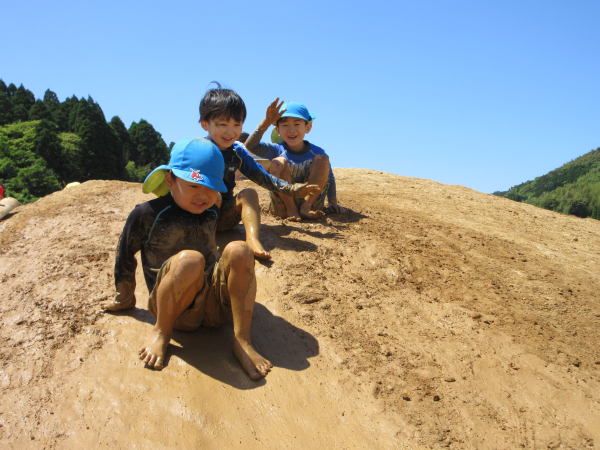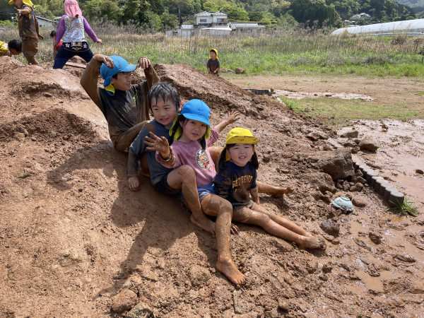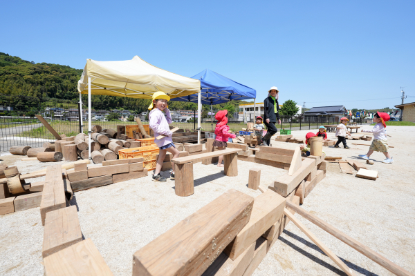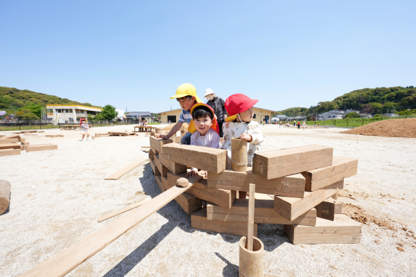 園庭では瑞々しい長島の自然の中で遊び